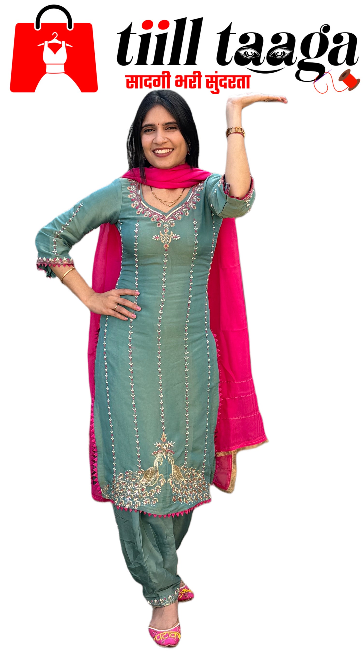 Mouse Colour Hand + Machine Embroidery Punjabi Suit Salwar | Unstich Suit